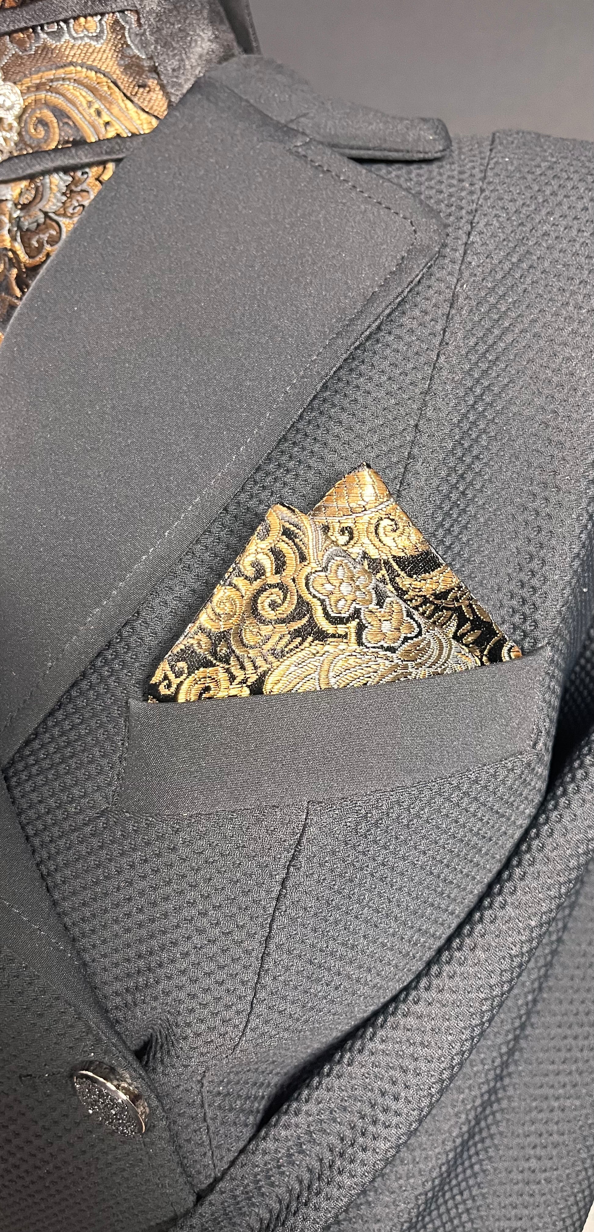 Black silk prefolded pocket square.