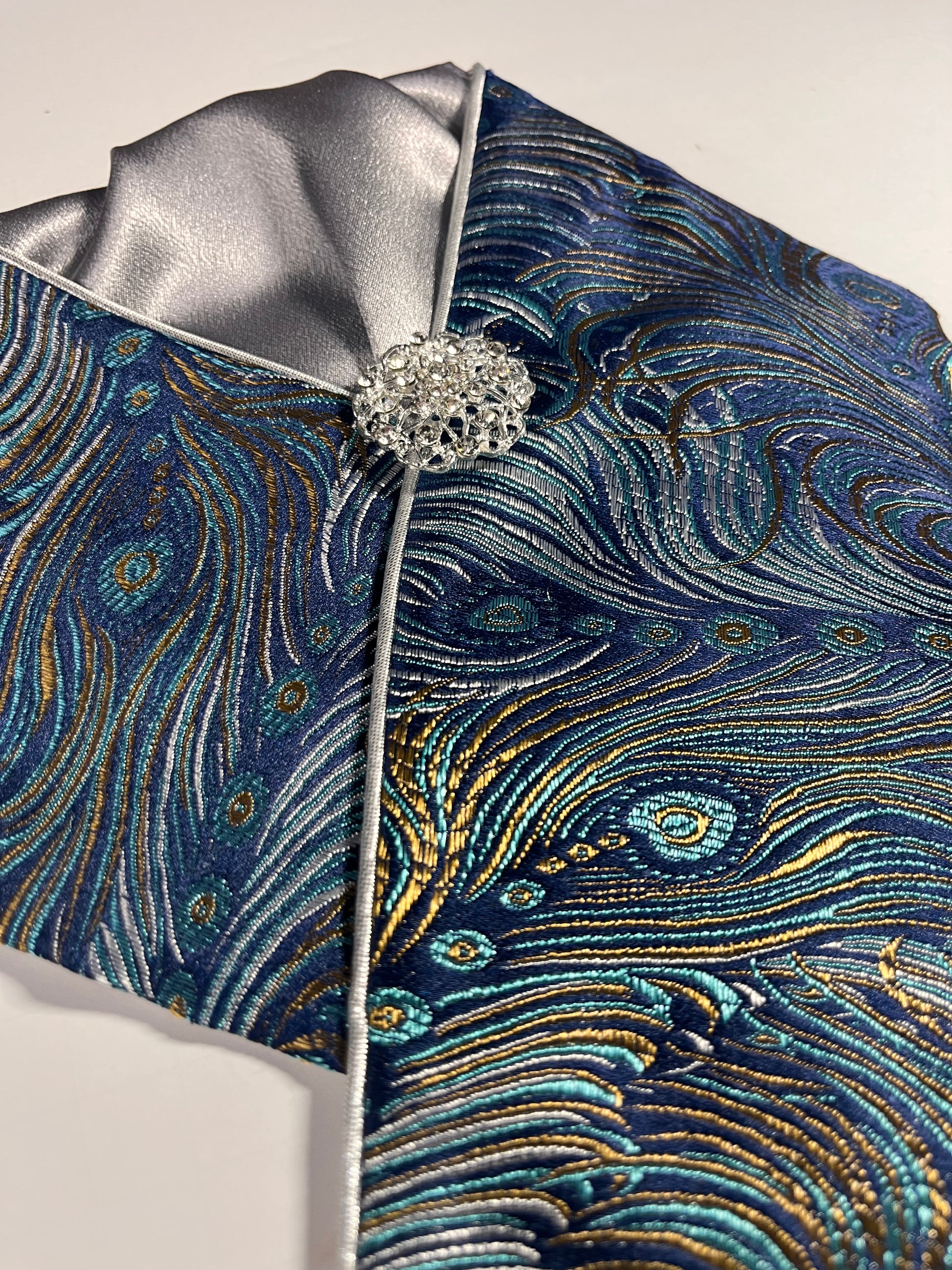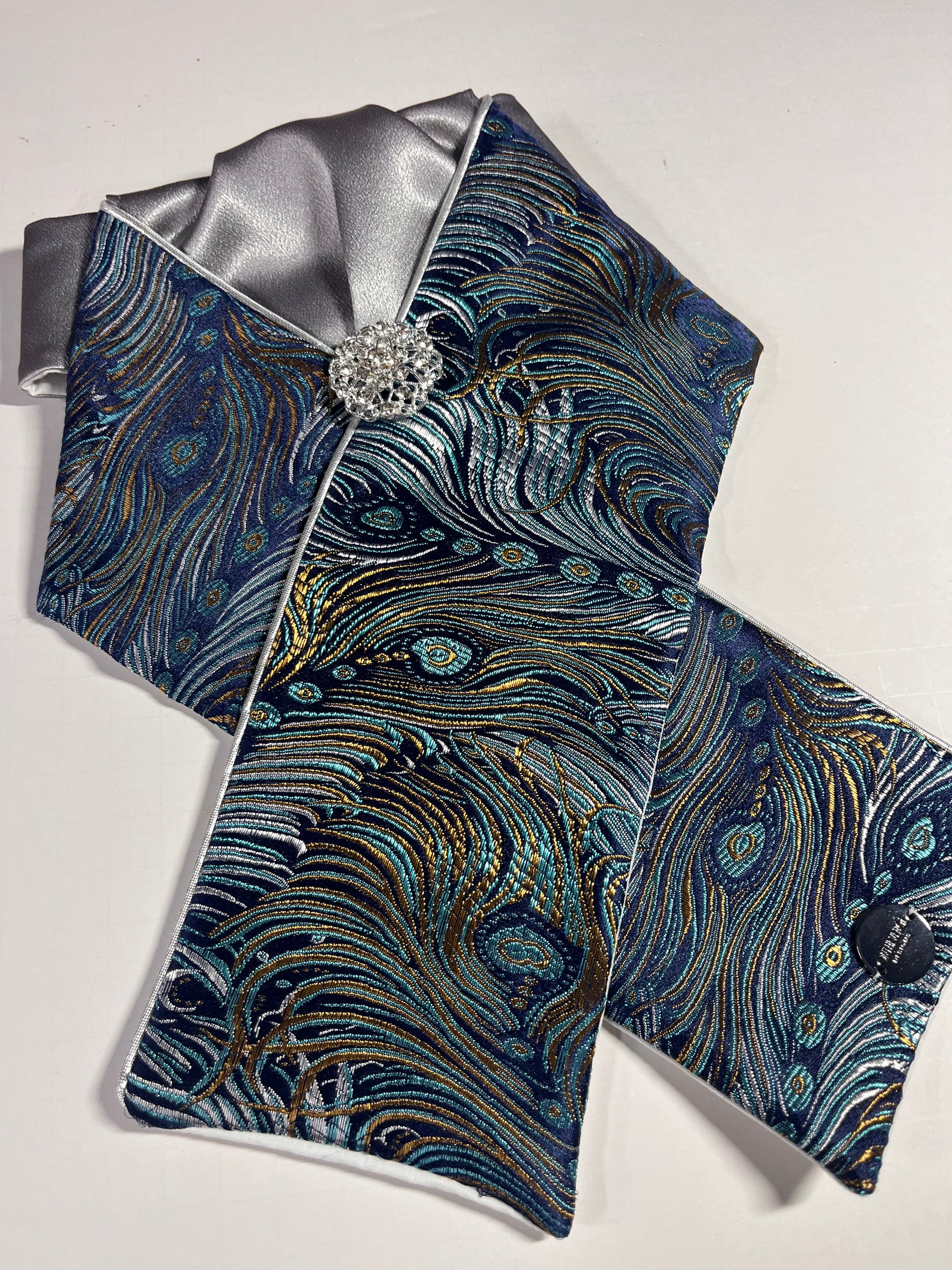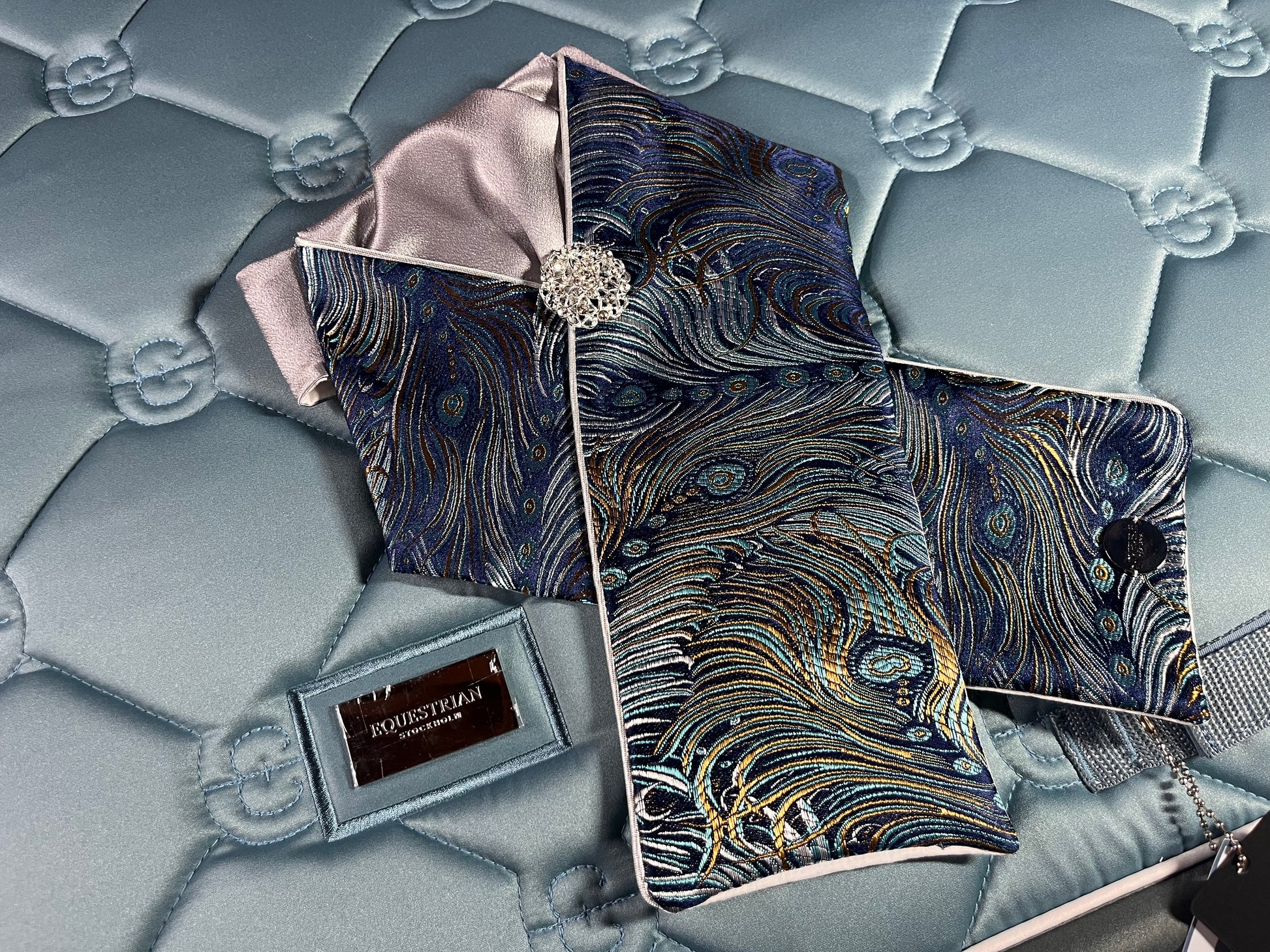 Equestrian Stockholm Steel Blue Dressage Saddle Pad with the Feather Dressage stock tie.